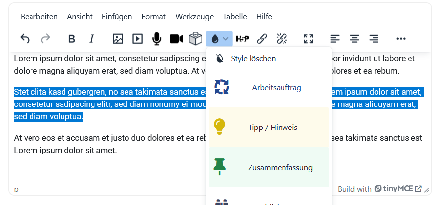 Stylevorlagen im Tiny MCE Editor anwenden